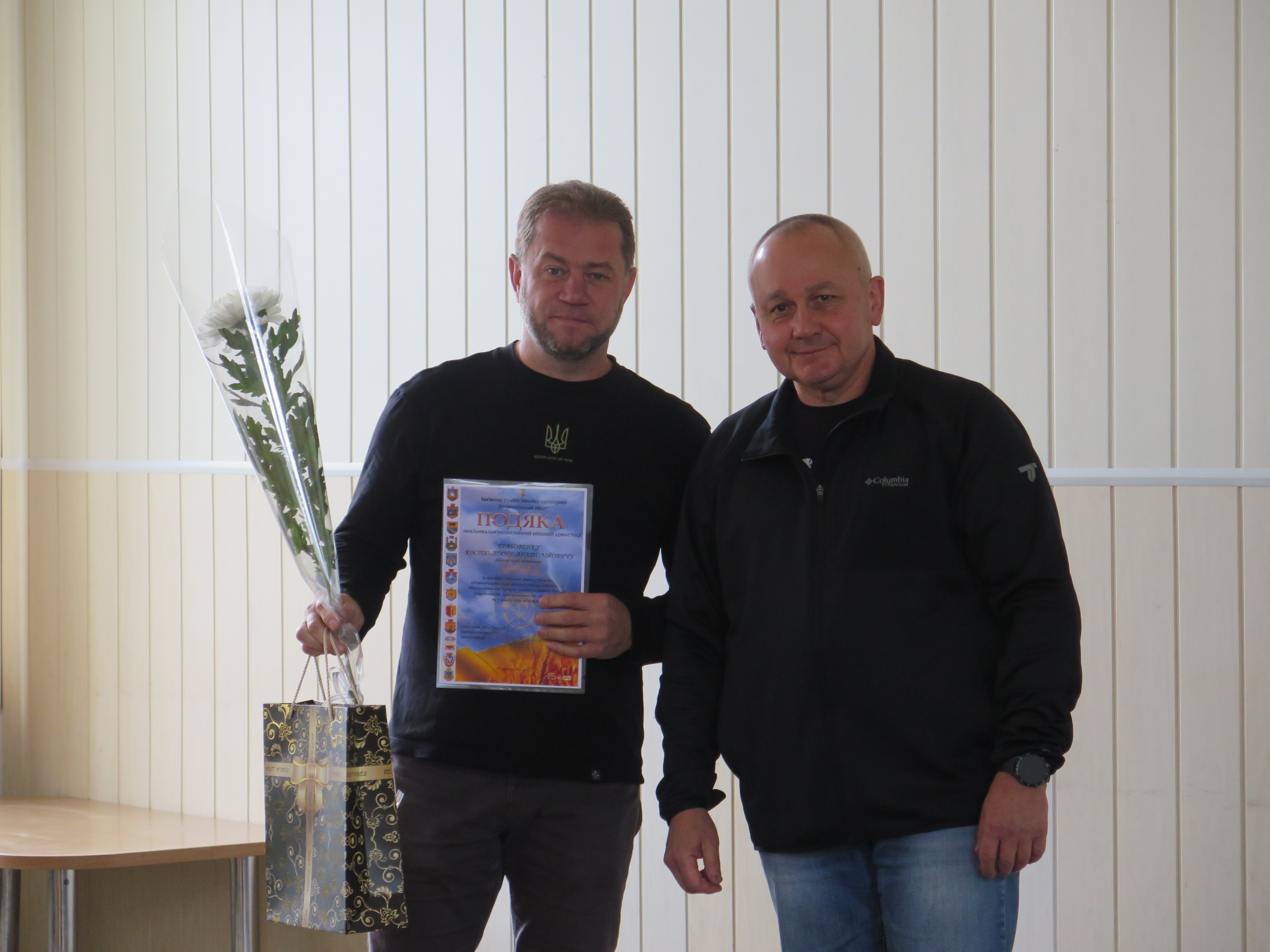 Днями міський голова Дмитро Ханіс вручив Подяки начальника Кам’янської районної державної адміністрації двом знаним у громаді підприємцям — Анатолію Затинацькому та Костянтину Грабовенку.