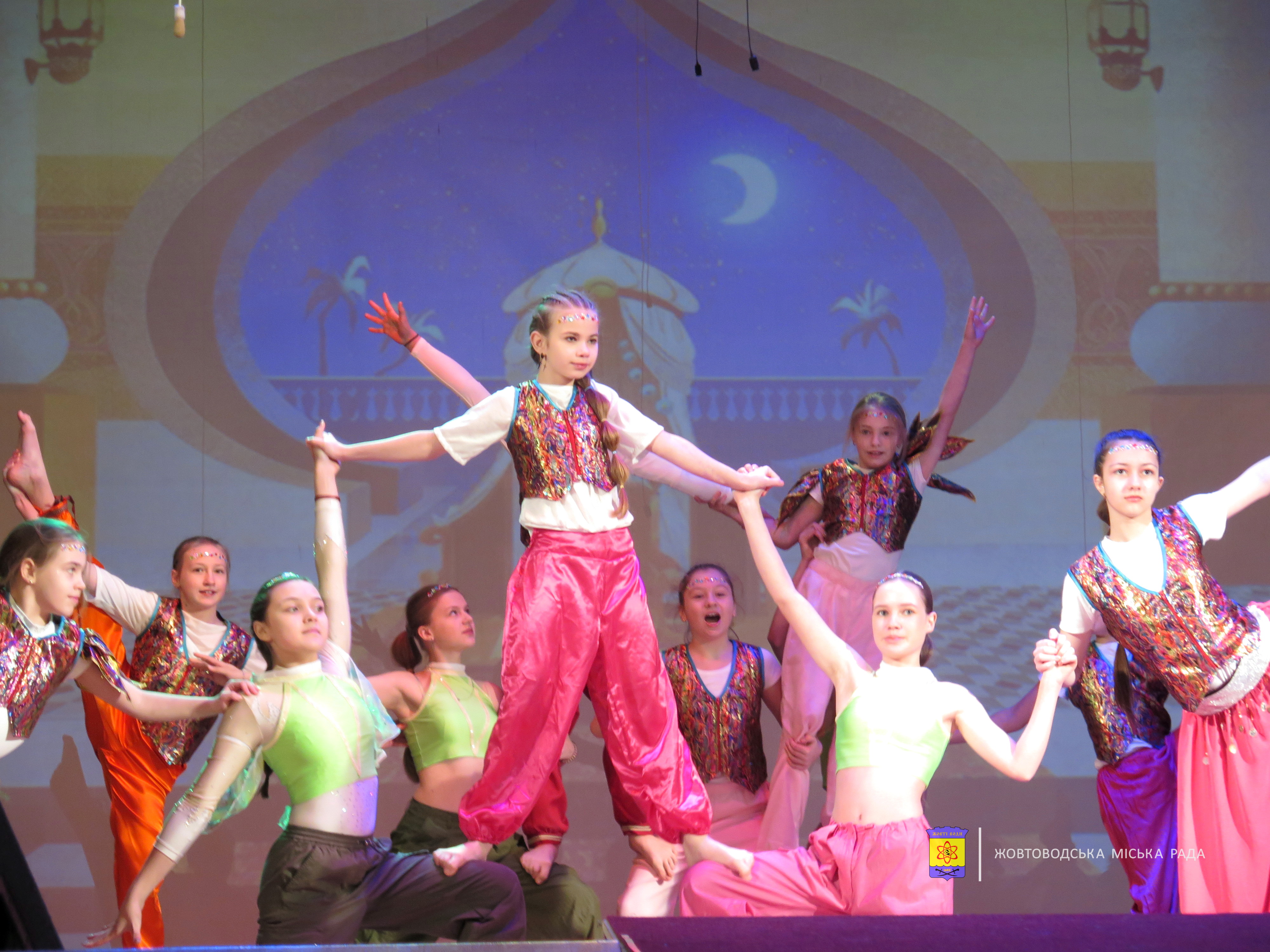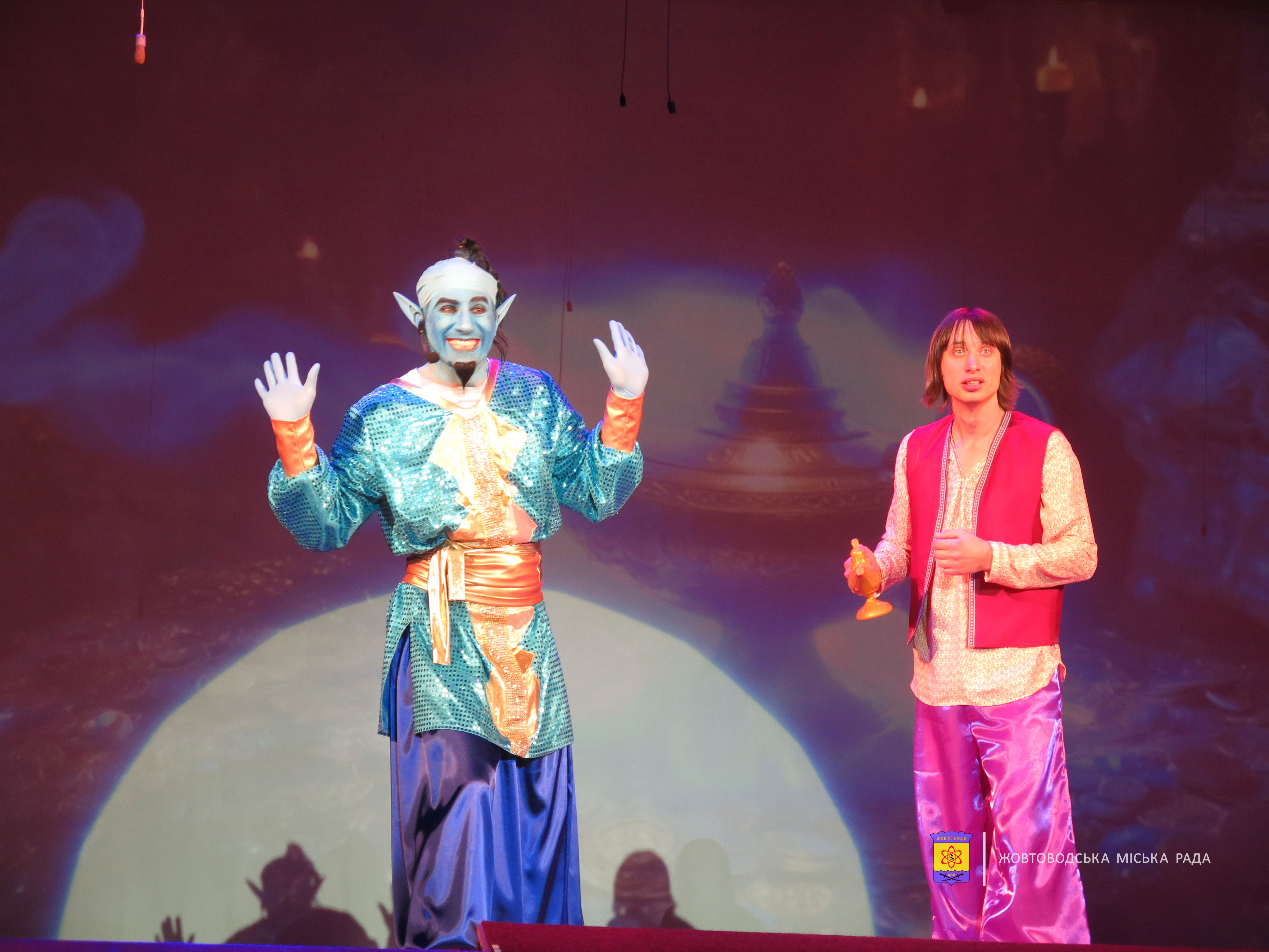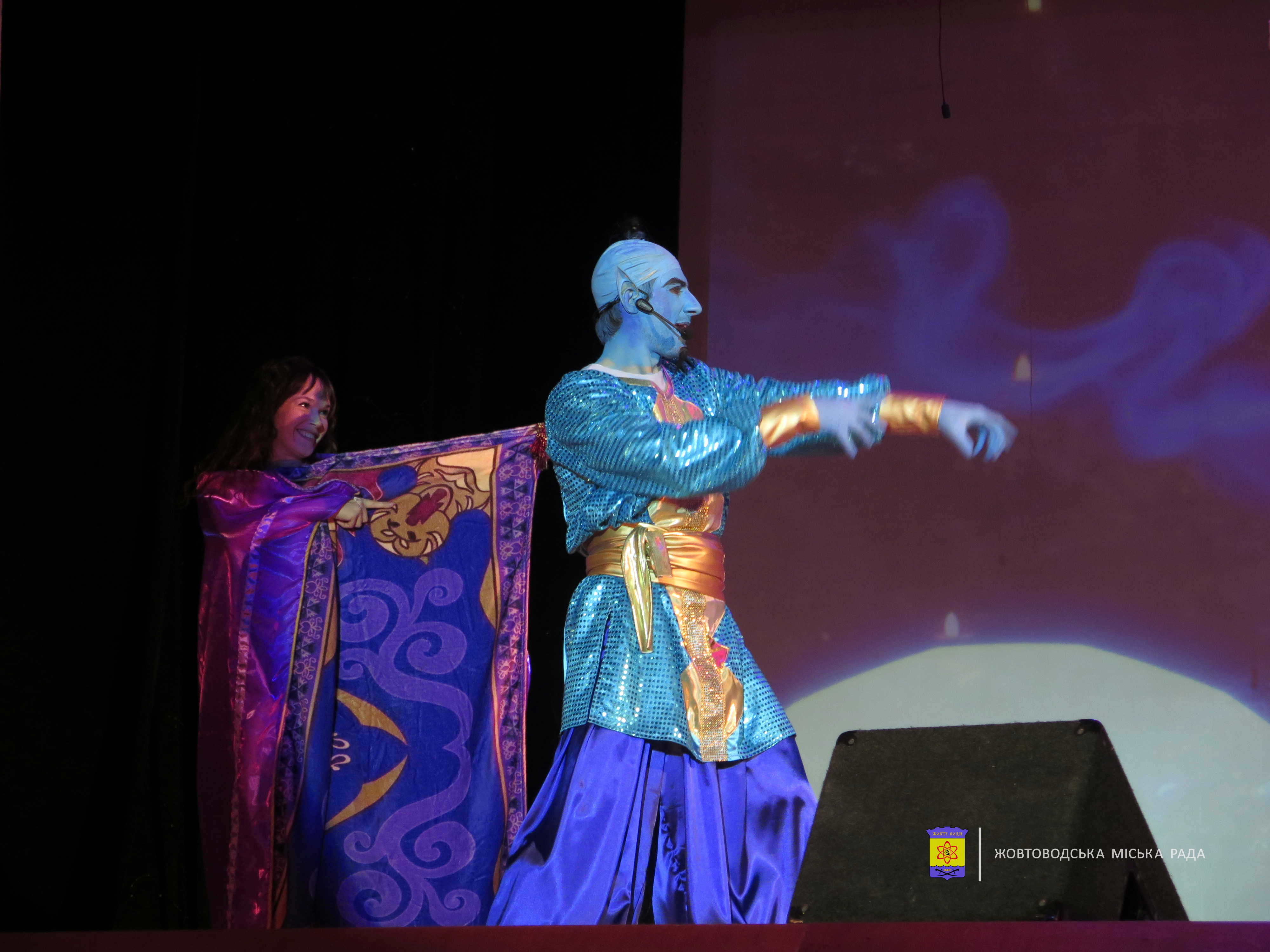Після теплих слів на сцені ожила захоплива вистава під назвою «Аладдін і чарівна лампа». Історія, у якій було все: прекрасна принцеса, крутий і відважний герой, кумедний дух Джин, небезпечні пригоди та справжні чудеса. Яскраву постановку підготували гуртківці Палацу культури.