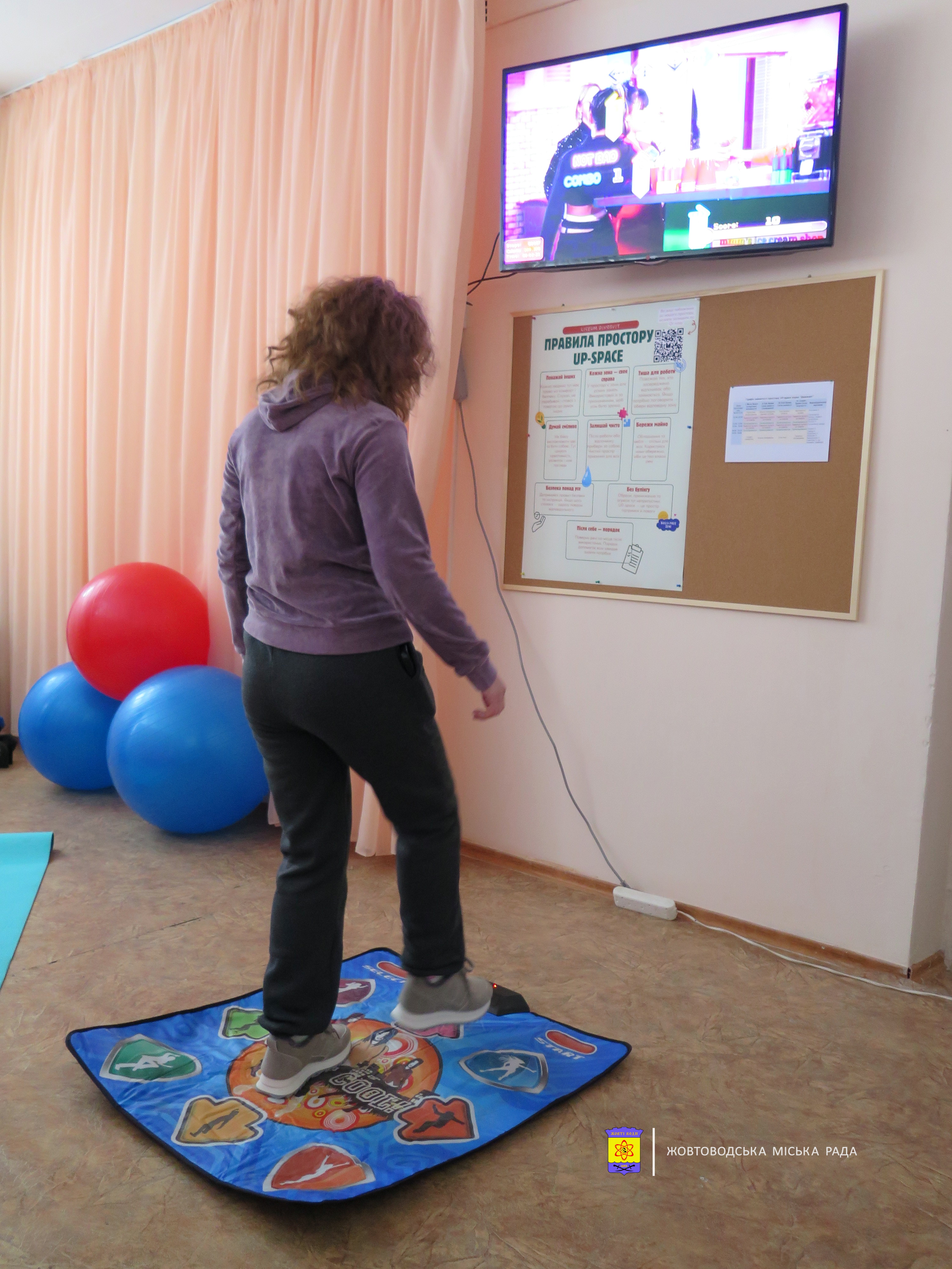 Спортивна зона створена для зняття напруги й відновлення внутрішнього балансу. Тут можна зміцнити тіло, виплеснути емоції, зарядитися енергією та спробувати нові активності. Простір обладнаний електронним дартсом, гантелями, м’ячами, килимками для йоги, боксерською грушею та танцювальним килимком.