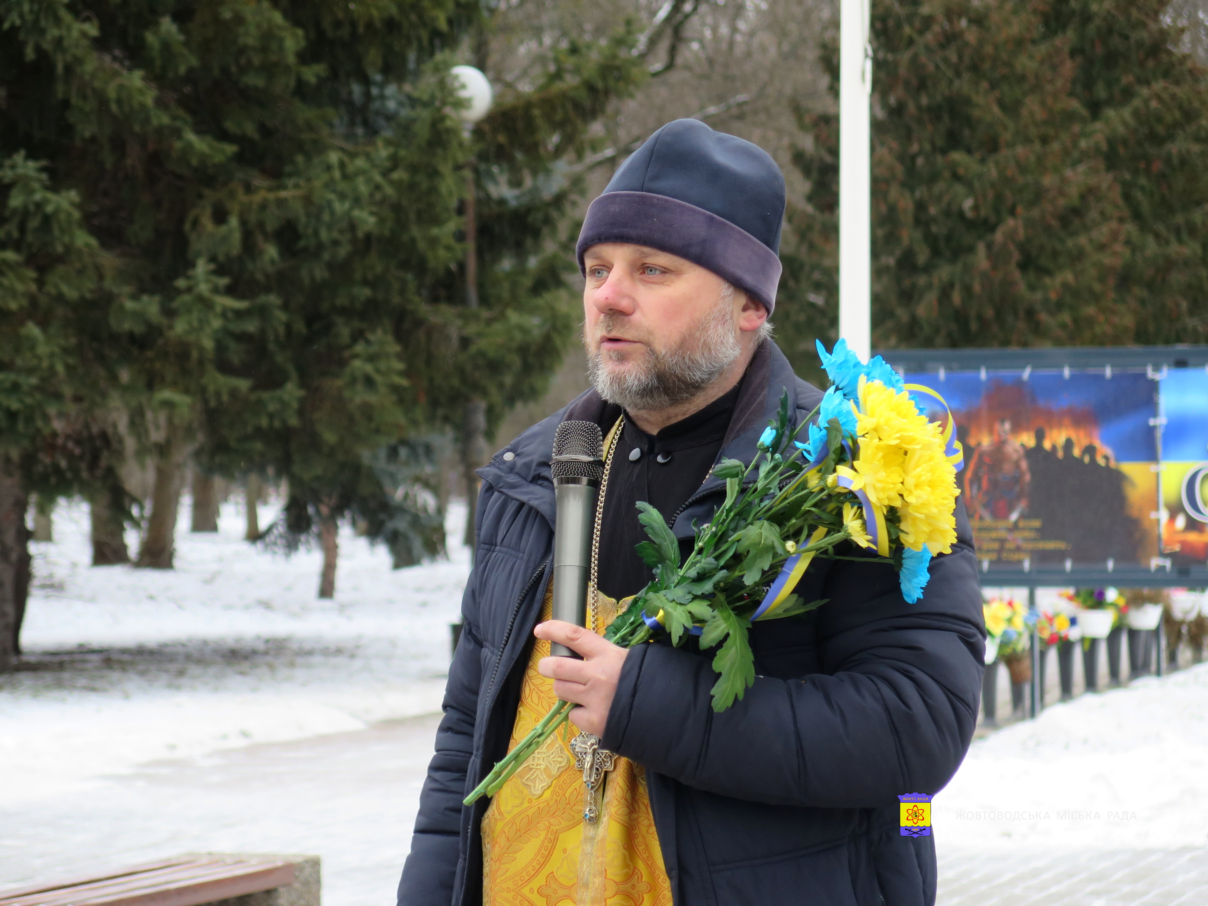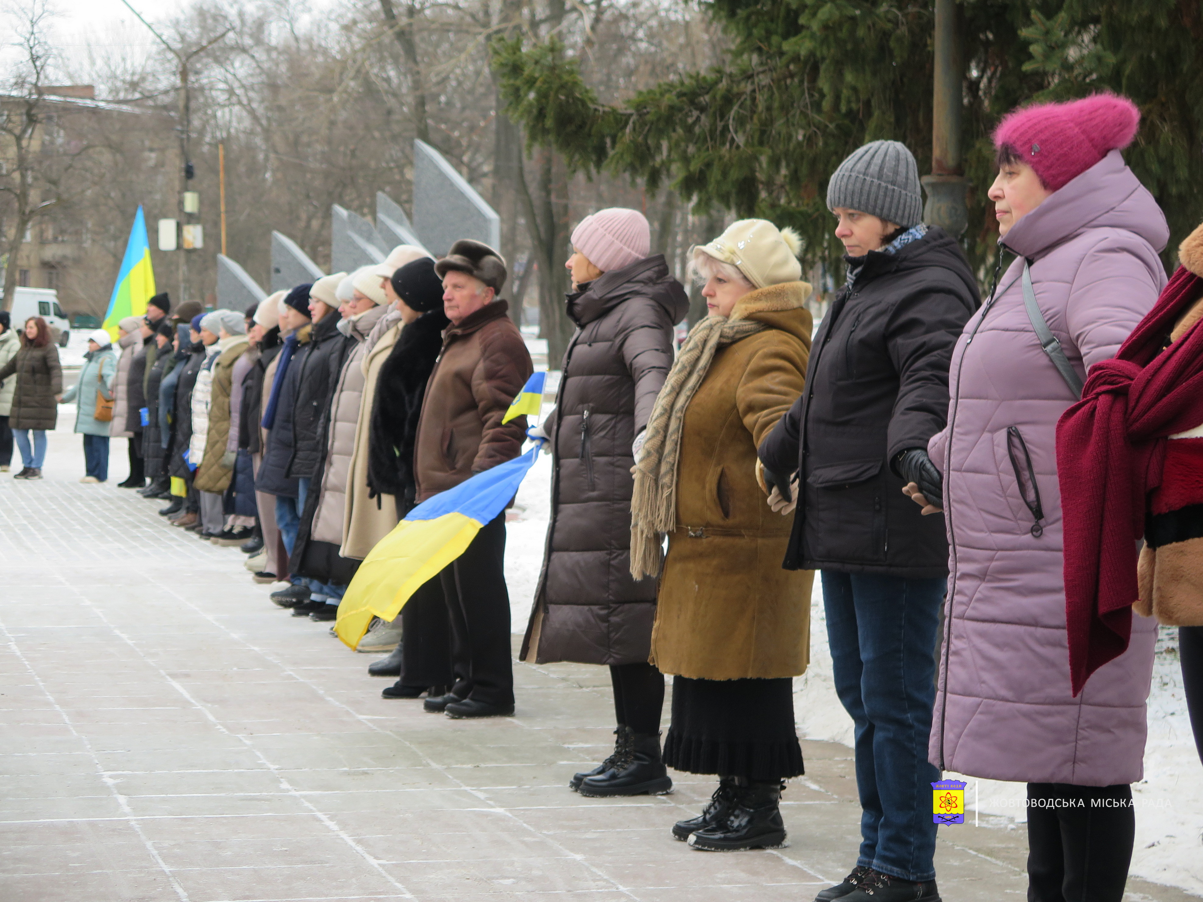 У Жовтих Водах захід з нагоди цієї дати відбувся біля Меморіалу пам’яті та слави загиблим воїнам у російсько-українській війні. Тут зібралися представники міської влади на чолі з міським головою Дмитром Ханісом, трудові колективи міських підприємств та установ, батьки полеглих жовтоводців і ветерани війни.